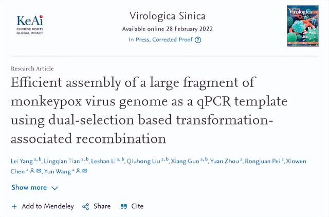 这篇论文原本内容是,武汉病毒所的科学家为了研究一种DNA修复重组技术,截取了猴痘病毒基因序列中的很小一部分进行实验,成功构建出了一个可以被猴痘病毒的PCR试剂检测出来的基因片段。但因为这部分基因片段很小,还不到猴痘病毒基因序列的三分之一,所以根本就不可能成为任何会对人造成危害的猴痘病毒。