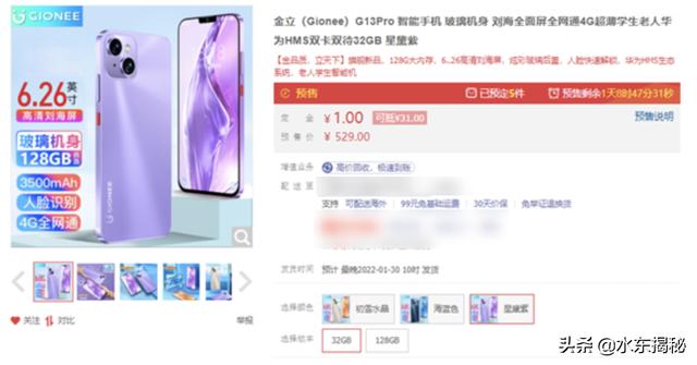 更狠的是,预售价仅为599元起,提供32GB、128GB两种版本,