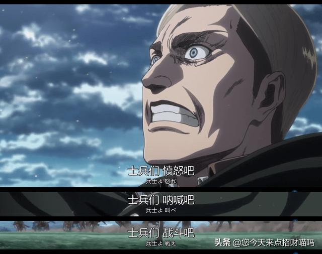 为调查兵团慷慨激昂的征兵演讲,在危难关头濒临绝境的义愤填膺,士兵们能够在将死的胆怯中“献出心脏”。