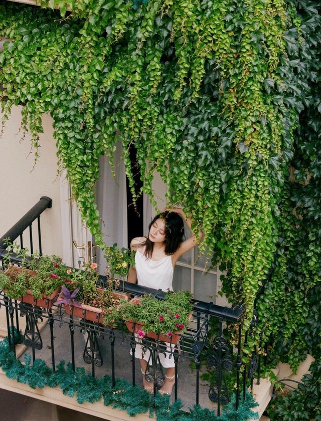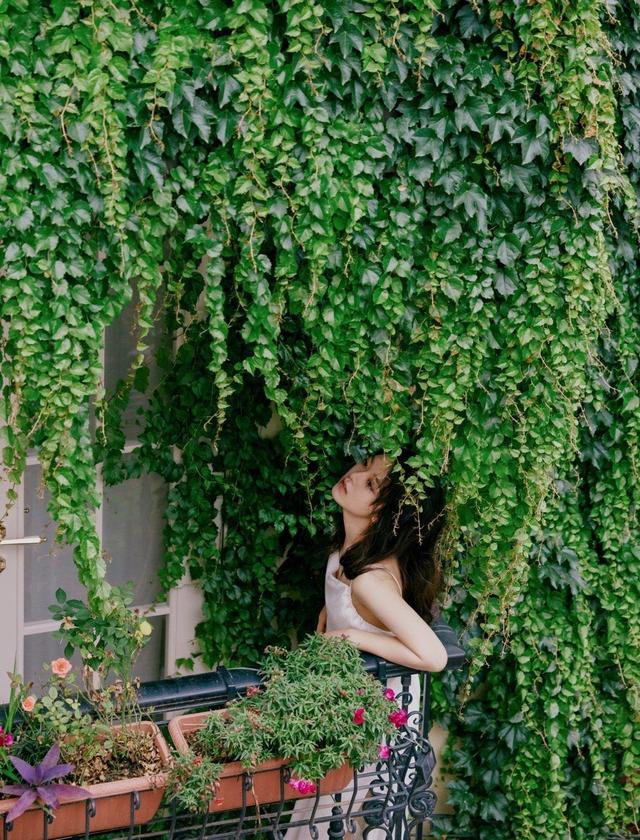 赵今麦轻轻地闭上双眼,站在露天的窗台上感受夏日的美好气息,在这一片绿野仙踪里宛若精灵公主,她的出现像一杯清爽的果汁,沁人心脾,让人感觉到丝丝清凉。摄影师很懂得利用她自身的气质来展现不一样的美感和意境,正值少女时期的赵今麦简直太有魅力了。