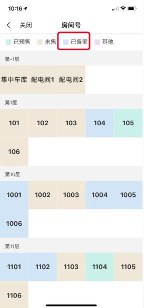 6、可看到一栋楼的房源情况,有已预售、未售、已备案、其他4种
