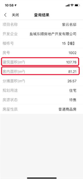 7、点击具体房号,可看到具体房源情况,这里可算出该房源的得房率