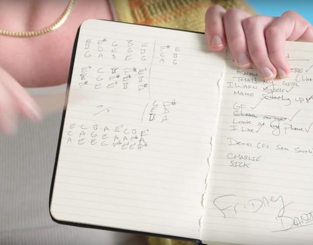 Charlie Puth说,他有一个习惯就是用笔记录自己想到的音符,歌词之类的东西,然后他认为这样可以更系统性地完成自己的创作。