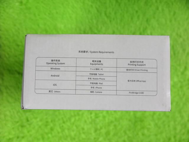 包装盒的侧面还详细列出了这款照片打印机的具体参数和产品信息,让人可以对产品属性一目了然。