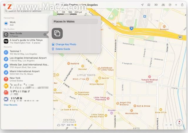 如果您有一个位置应该添加到指南中的列表中,您可以单击带圆圈的加号按钮,然后单击相关指南以将该地点添加到。您还可以从头开始制作自己的全新指南,然后可以与其他人共享。如何在 macOS Big Sur 上的 Apple Maps 中创建指南
