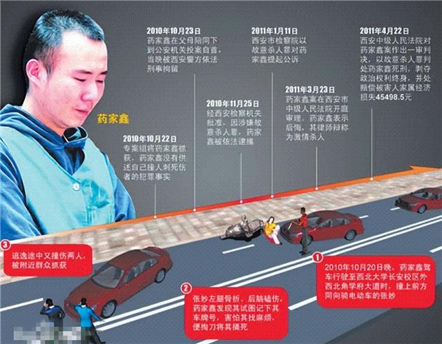 无论是家庭条件还是个人条件都很不错,可叹的是一念之差,将他自己与张妙的人生都毁了。那是2010年10月20日,药家鑫驾驶自家的红色雪佛兰小轿车去了外国语长安校区一趟,晚22时30分许准备返回西安市区。当天他的心情颇好,边开车边看滨崎步的演唱会,一心二用还是开车的时候很容易出事。