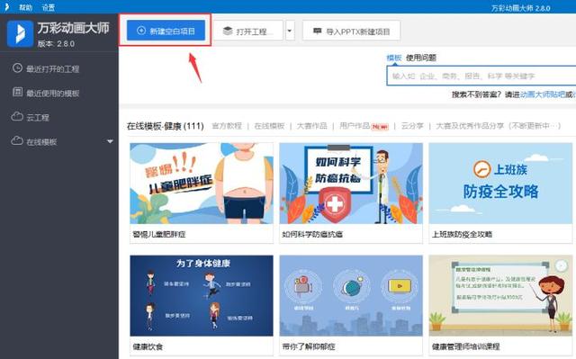 点击新建空白项目,运用海量素材制作专属创意动画视频。