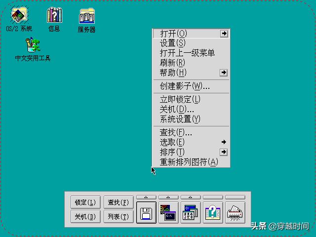 淡蓝色的背景让人和Windows 95联想到一起,桌面上有四个图标,分别是“OS/2系统”、“信息”、“服务器”和“中文实用工具”。