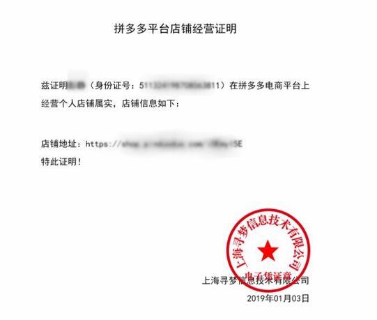 在拼多多上经营的店铺,需要到拼多多网站的商家后台申请证明。