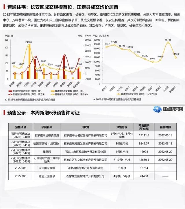 当周石家庄普通住宅供应面积5.00万平方米,环比上涨201%;成交面积6.80万平方米,环比上涨54%;成交均价14526元/平方米,环比上涨2%。受石家庄调控政策影响,本周整体市场到访成交涨幅明显,借助政策放松,住房贷款首付和利率下降方面影响转化为成交。且多个项目加推新房源、待入市热点项目有新动态,市场信心以及购房预期进一步被推动。