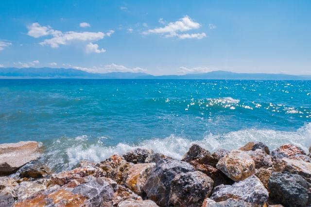靠近她时,已是夏日的傍晚时分,因下午的一场细雨,风里盛满湖水的湿漉,天山山脉的洁白和夕阳里丝质的暖意,贴着我发白的牛仔裙就那样轻柔地包裹,我与这素昧平生的赛里木湖顷刻间相融。夕阳在水的尽头遥遥相望,云停泊在山线,或浓或淡,光寻找着机会流泻在湖面,浪花层层叠叠追逐着光点,翻卷与相拥,有些海的模样。这是大西洋最后一滴眼泪的告白吗,我想看清她眸子里的深邃,却一不小心被她的深情淹没,一种积攒千年的魔力似乎要拉我入梦,如同峨眉山顶舍身崖上佛光照耀的云海,招人心魄,让人渴望在云端无限温柔的冲动。