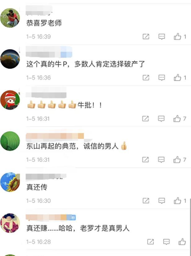 今年1月5日,罗永浩限制高消费信息清零,再次登上微博热搜,“真还传”疑似大结局,网友纷纷点赞:太励志了,是个体面人!