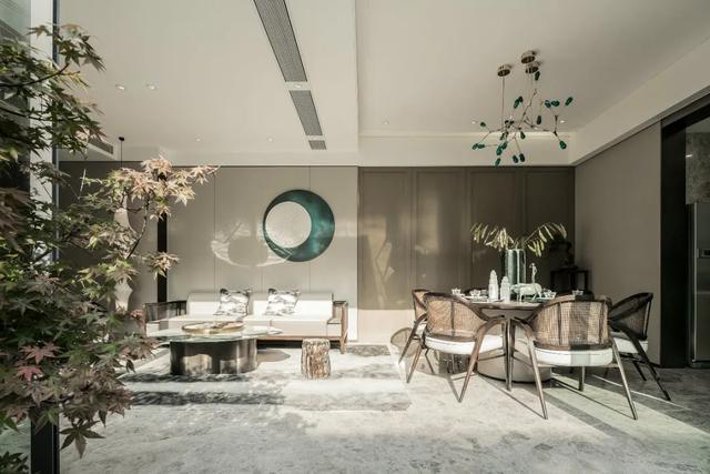 ④一些中式经典元素点缀,如窗花、窗洞、意境画、禅意摆件、绿植等。