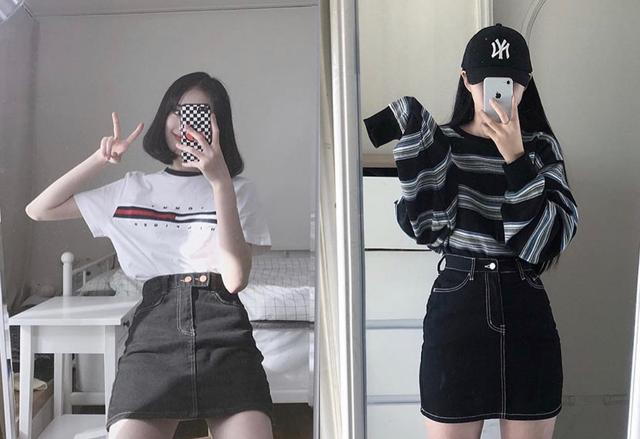 天气还没凉下来之前,依然可以用宽松的大T恤搭配合身的小A字裙,甜美率性可爱。▼