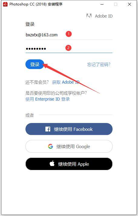 如果没有账号可以点下登录下方的 获取Adobe ID,将1至4项分别填上姓,名,电子邮箱(就是你要注册的Adobe账号),密码,注意下面用红笔圈起的,密码不能包括名字,邮件地址和通用密码,密码至少要包含一个数字,或者符号,还要包含大写字母加小写字母,最少8位,填好后点注册,
