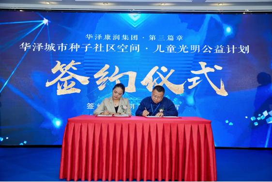 随后,北京华泽康润教育科技院执行院长胡徐丽女士和光明康爱创始人李智先生作为签约代表启动华泽城市种子社区空间·儿童光明公益计划签约仪式。