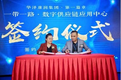 签约代表:华泽康润集团创办人胡泳谦女士和中国区划协会推进一带一路建设委员会副秘书长翟向前先生