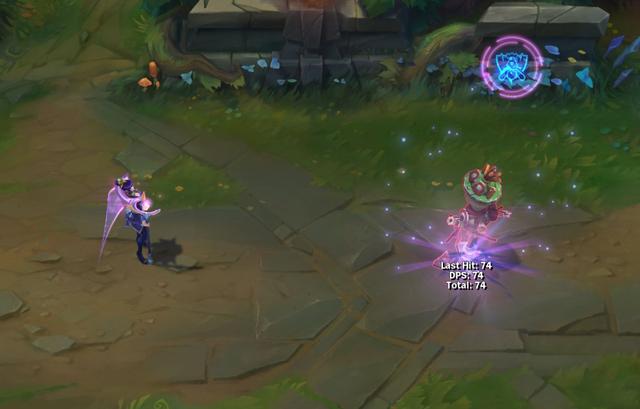 至于特效方面稍微简单了些,q技能会甩出个光球,命中敌人后会出现带有S赛标志的霓虹灯牌,使用w技能留下的影子也有一圈光柱。e技能命中后敌方身上会有神似真实伤害的x标志,至于大招被复制的技能都会由蓝色转为粉色。