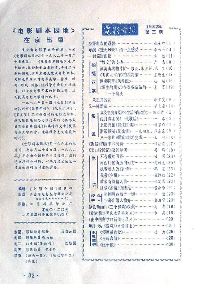 江苏版《电影介绍》1982年第3期封面照——影坛新秀赵静;封三照片:影坛新秀张金玲;封三照片:杜十娘——潘虹饰演。她们都是那个年代很受欢迎的演员。江苏版《电影介绍》江苏省电影发行放映公司出版,定价:0.20元。@东方红里83号