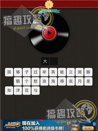 游戏简介:全民疯狂猜歌名游戏 !通过聆听歌曲的旋律猜歌名,正确输入歌曲名称才能进入下一关!音乐素材精选自各大流行歌曲排行榜,经典老歌库,网络歌曲,我是歌手,中国好声音等,你敢挑战吗?