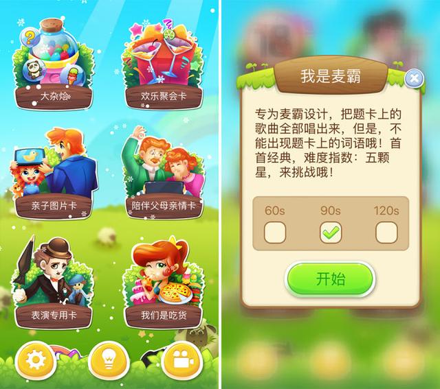 同样也是你演我猜游戏,题卡丰富。除了聚会卡、吃货卡、父母亲情卡、亲子题卡,还有无节操卡、表演专用卡、麦霸卡,和以年龄划分的 80、90 后卡片。值得一提的是,麦霸卡只能用唱歌来答题,此外还有 IT 圈题卡,提问 IT 界大佬、知名公司和必备 app。