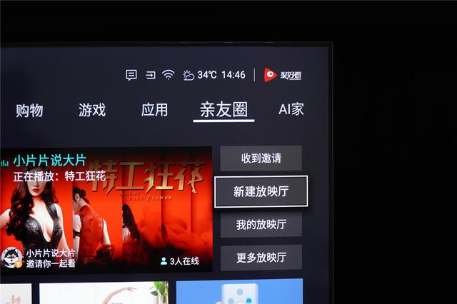 在这里可以新建自己的和加入别人的放映厅,简单来说,就是和他人连线一起看电影。这个功能以前在海信电视上体验过,没想到这款东芝的产品也有搭载。
