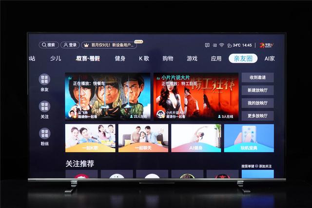 回到东芝65M540F的界面,我还发现了一个有意思的功能,叫做亲友圈。