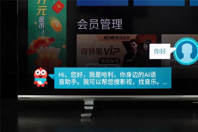 东芝65M540F支持远场语音,以及24种方言的识别,语音唤醒词是“你好哈利”。我体验了一下,灵敏度和识别成功率是OK的,但是出现的卡通形象就有点出戏了,这不是海信的小聚吗?