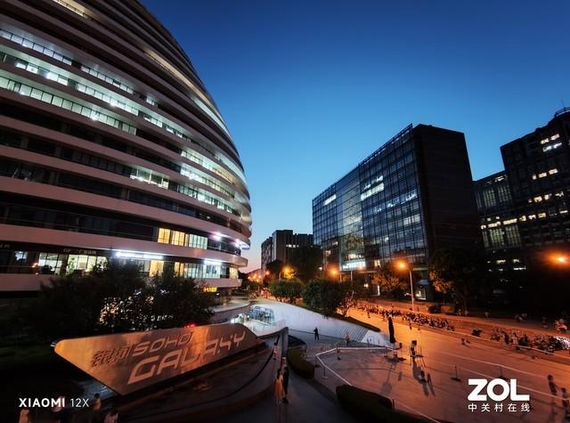 时间来到晚上,当光线条件下降时,三者在夜景方面的差距远比白天更加明显。从样张来看,iPhone 13的画面是最亮的,但是夜景色彩也很奇怪,天空严重偏蓝,看起来像加了一层滤镜,而且“鬼影”同样没有避免掉,夜景体验确实不太好。相较之下,vivo S15 Pro和小米12X确实表现要好很多,画面纯净,噪点也少,高光压制也不错,突出了夜景氛围感。