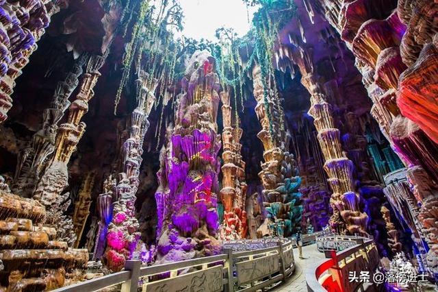 溶洞探险是游乐园的主打项目,也是每个来到这的人必打卡之地。虽然设在室内,溶洞面积却很大,有5公里长,洞内怪石嶙峋,炫彩灯光加持,让人完全走进了一个充满传奇色彩的奇幻世界。