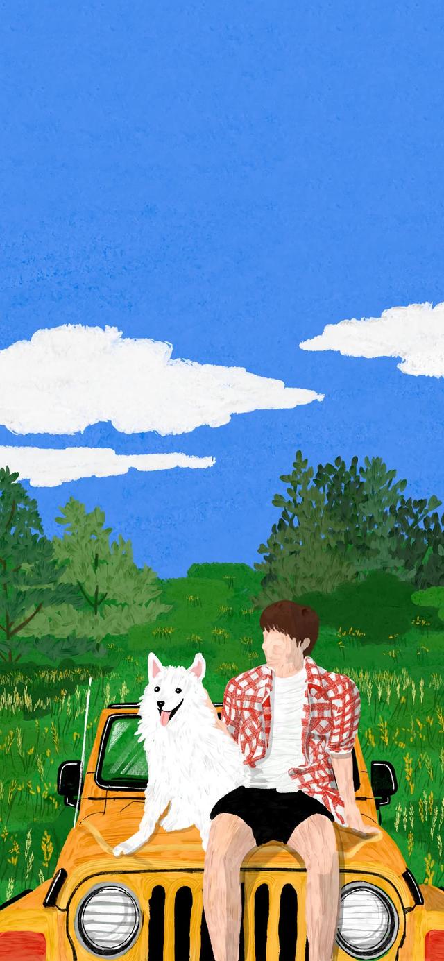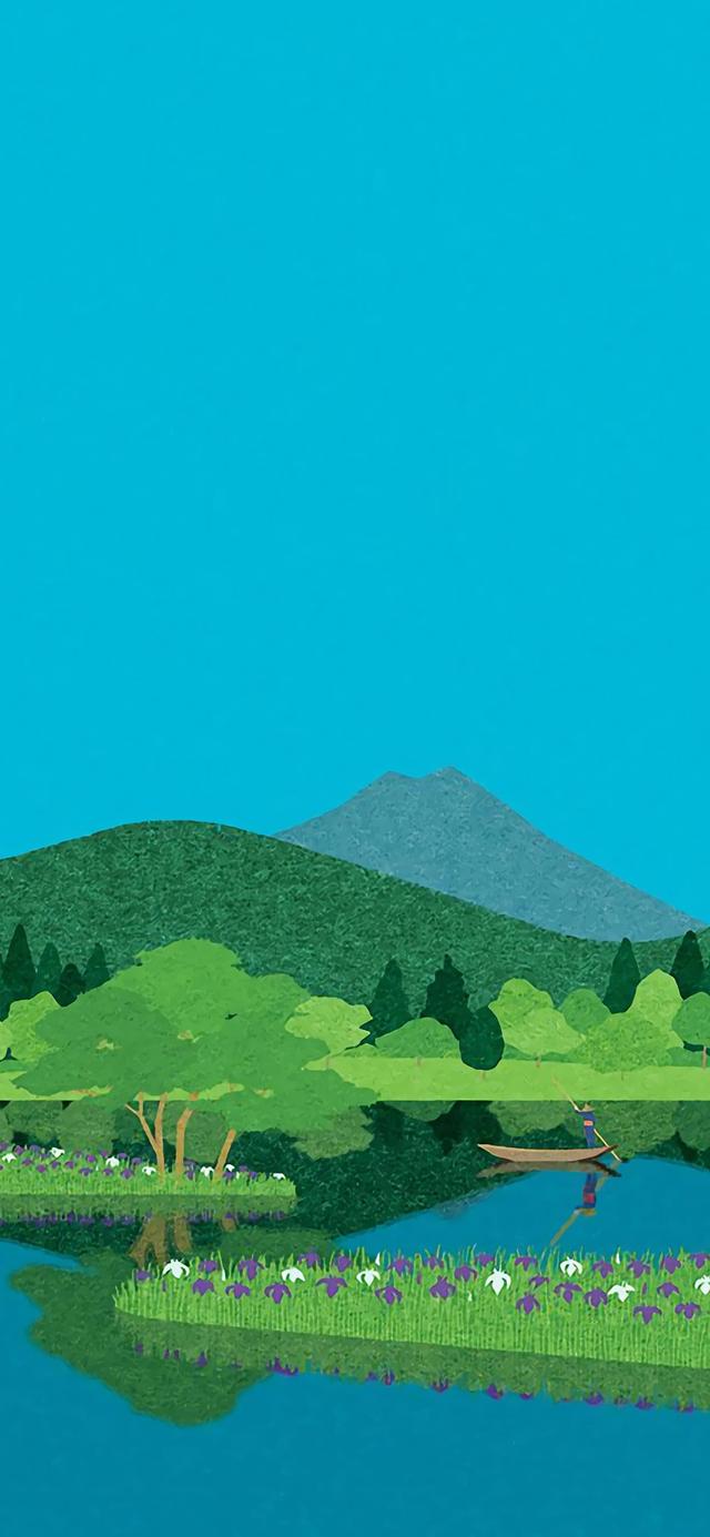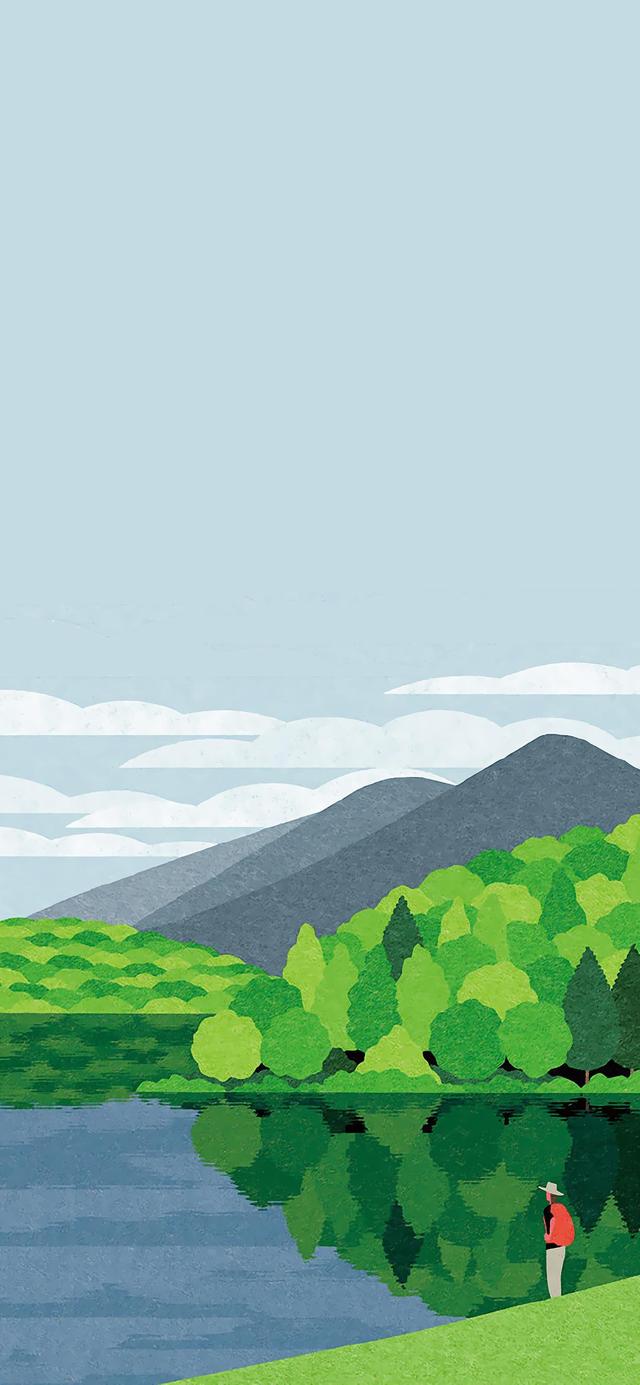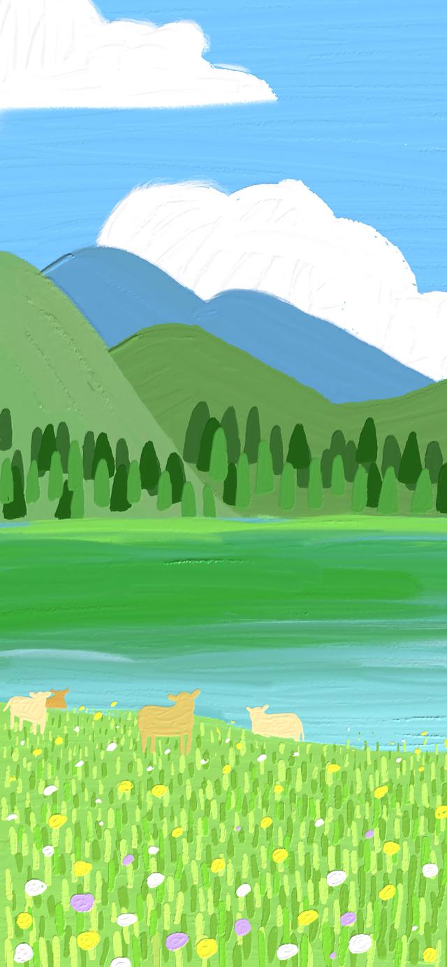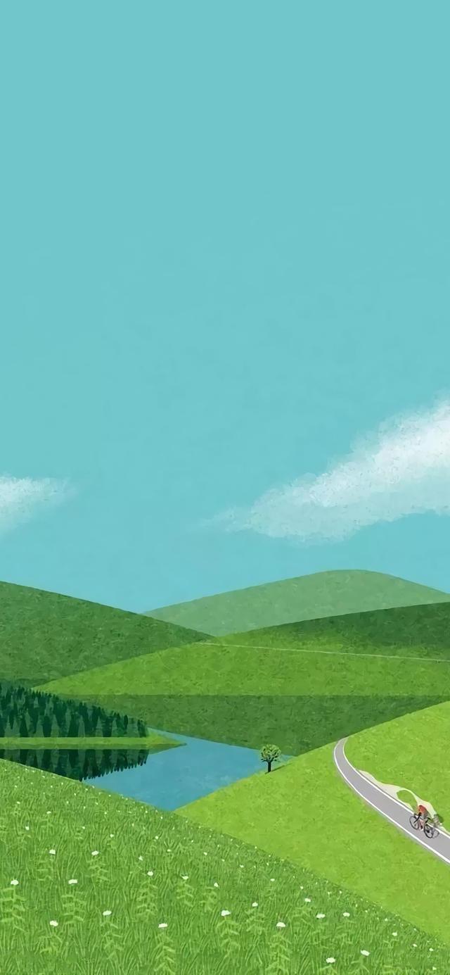 绿色护眼小清新插画壁纸。