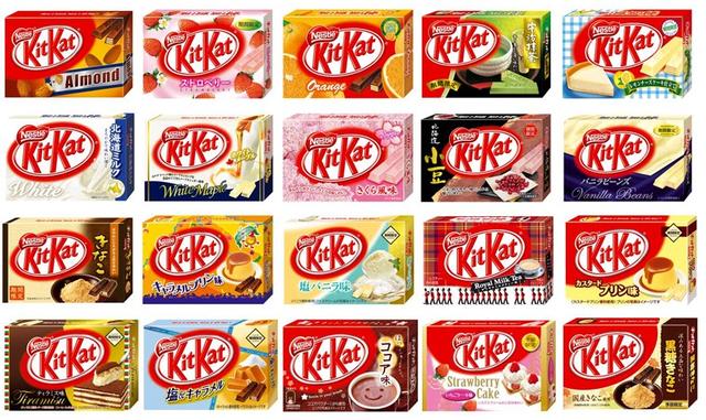 其中比较经典的口味包括唐辛子辣味、芥末味、生姜味KitKat,秋季限定的栗子口味KitKat,富士山包装的芝士蛋糕味KitKat、日本信州苹果口味的KitKat等等。其中栗子口味、苹果口味等等,由于市场反响热烈,如今早已不是仅在某个地区和某个季节售卖的产品了。
