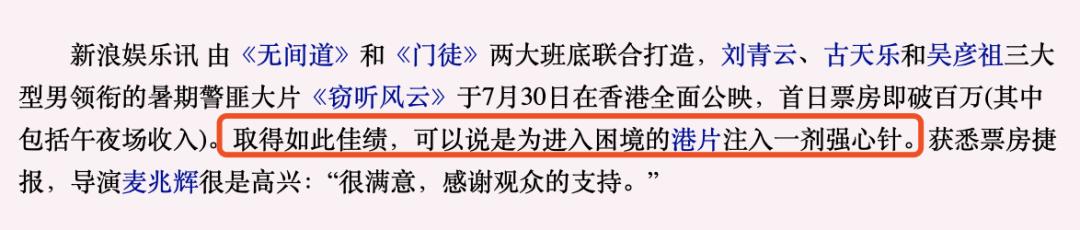 港片的骨肉均在《窃听风云》之中,但香港电影市场的低迷,让这部电影找到了另一个突破口。