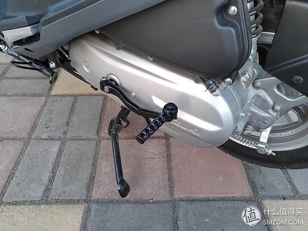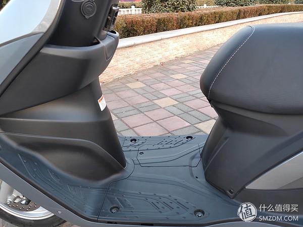 前踏板也较宽大,腿能伸直,平时买菜买面什么的装载起来也是方便很多,虽然没大马桶,前踏板放袋50斤面还是毫无压力的