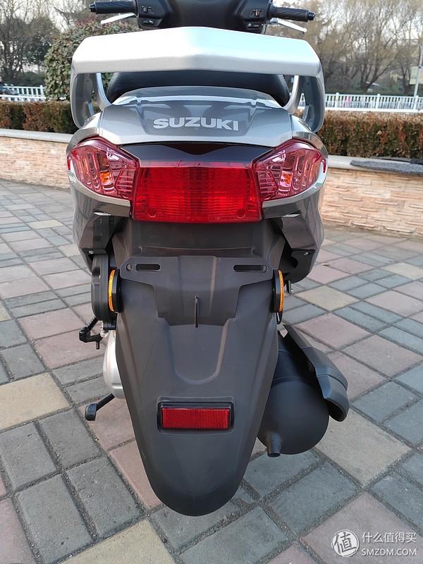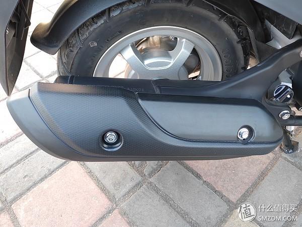 排气的护罩还做了些纹理,看起来有些纤维的感觉,后轮为10寸。