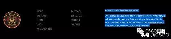 对于你来说ENCE的队名含义不明,甚至在你第一次看到ENCE的logo时,你会觉得这个黑乎乎的logo有点粗糙。和你们一样带着好奇的笔者终于在他们的官网下发现了小小的几行字:
