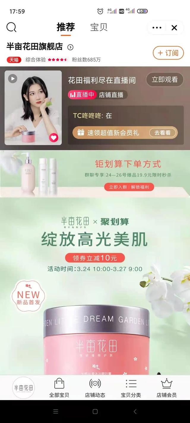 截止目前,茱莉蔻Jurlique的天猫旗舰店粉丝数量仅为68.5万,这个成绩实在算不上好,毕竟,近两年新晋的身体护理品牌半亩花田的天猫旗舰店,粉丝量都有600多万。