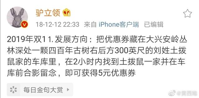 去年就有网友调侃,称预测今年的双十一发展方向是,把优惠券藏在大兴安岭丛林一颗百年老树后方的土拨鼠家车库里,然后2小时内找到土拨鼠一家并合影留念。即可获得5元优惠券一张,这不是赤裸裸的讽刺这是现代网友网购的血泪史。