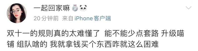 本来还坐等着看拼多多用户翻车的网友也默默的表示,手中其他平台双十一的定金忽然就不香了,重点是定金还不能退,尾款还要人命。放眼一看,今年上拼多多抢补贴的很多都是之前黑的最狠的,金钱面前别说低头了简直就是卑中卑,卑的还很喜悦!