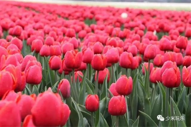 被各式鲜花包围,放眼望去满是绵延无际的鲜花,这份浪漫漫,谁能不心动?五十多个品种,共200万株各式郁金香争相开放,各式郁金香组成绚丽的彩虹花田,十分浪漫~