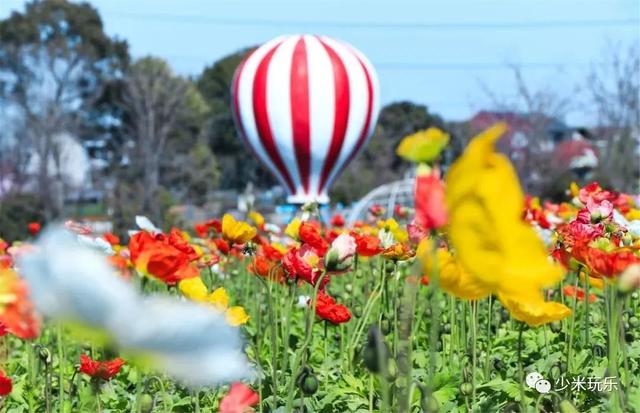 再加上花田上的热气球雕塑,像极了《一起来看流星雨》中经典的表白场景!