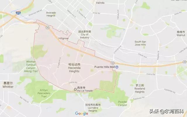 S Hacienda Blvd是哈岗城市中央一条南北贯穿哈岗的大道,这条大道上也从南到北分布着三处商业比较集中的地方。沿着SHacienda Blvd向南驾驶到最南边的山坡,就到了著名的西来寺(His Lai Temple)。