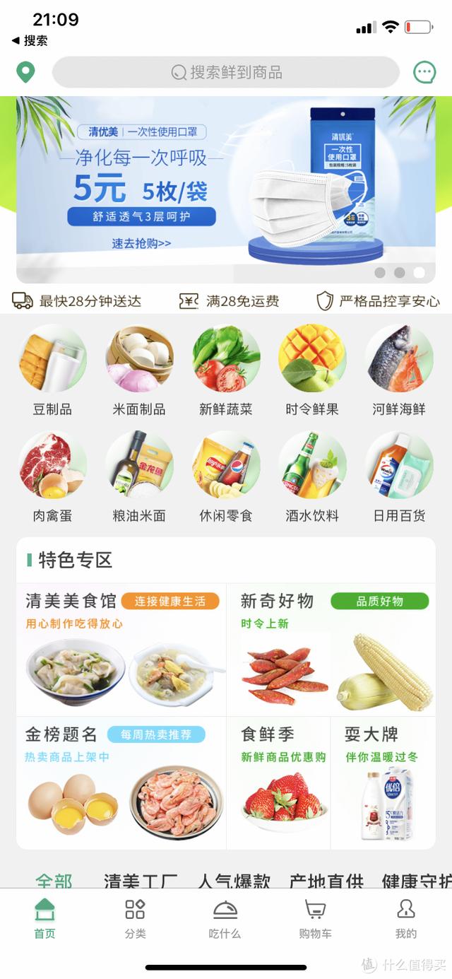 每日优鲜满49元免运费,不过我测试的节点已经沦陷,生鲜食品基本都已下架,仅剩的商品2小时内送达。