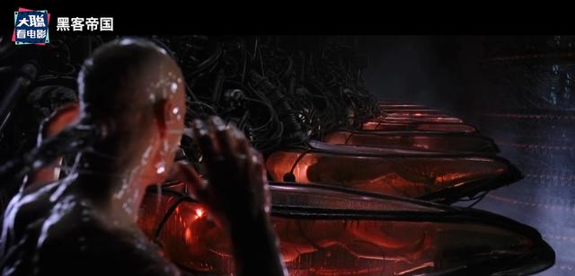 之后真实的尼欧在类似于子宫的器皿中苏醒,展现在他眼前的是密密麻麻的人类储藏器皿,并伴随发出高能的电压。