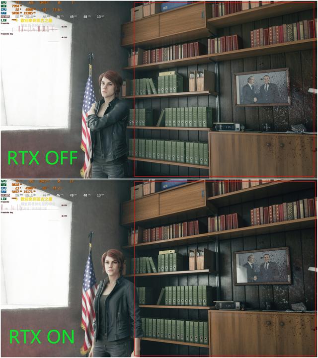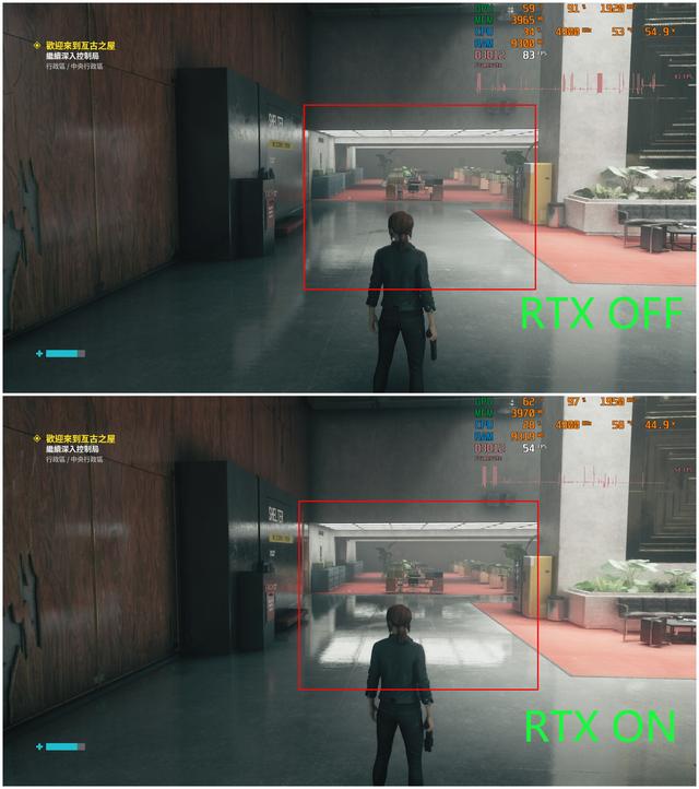 由上图可见关闭/开启光线追踪特效在游戏画质上的差异还是很明显的。