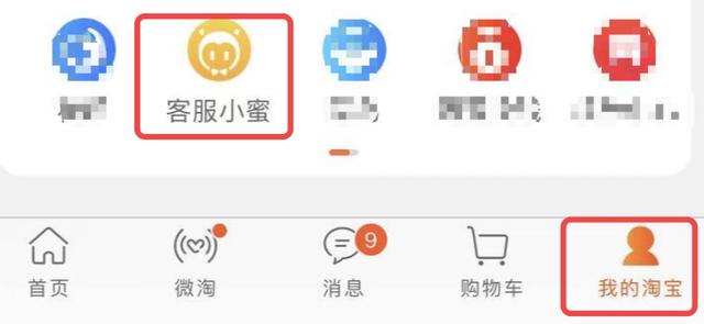 说了支付宝我们再来看下淘宝的年度账单要如何查询,这里我们首先点击「我的淘宝」、「客服小蜜」。