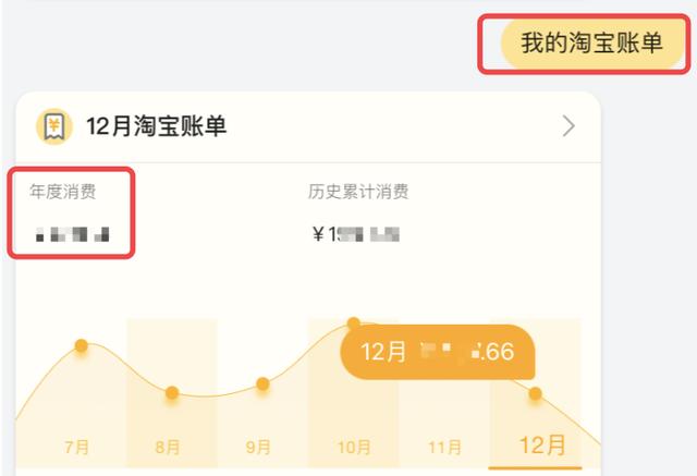 进入后我们发送「我的购物分析」即可,这上面显示的年度消费就是你这一年的消费了。