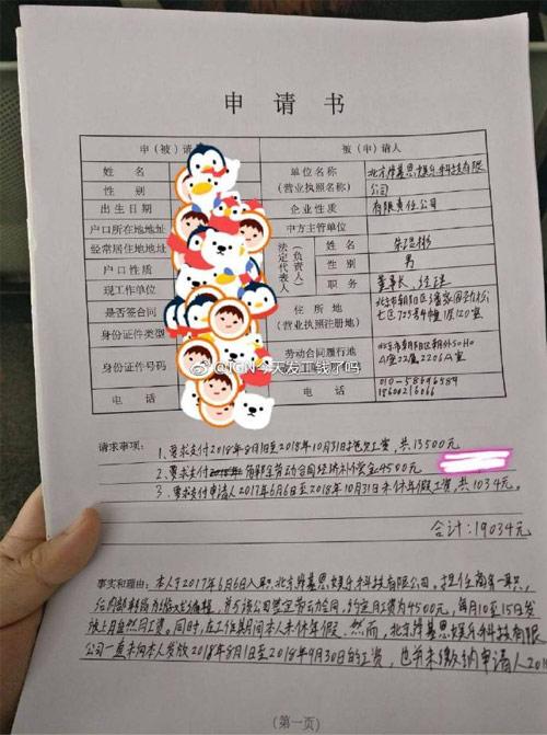 网友“IGN今天发工钱了吗”提供的劳动仲裁申请书