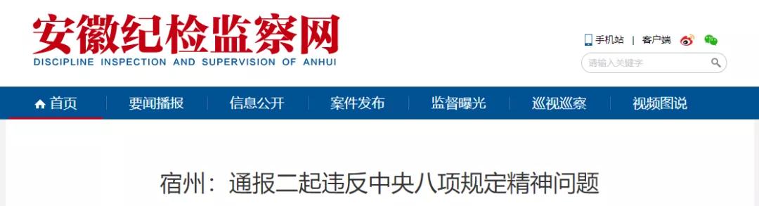 宿州:通报二起违反中央八项规定精神问题