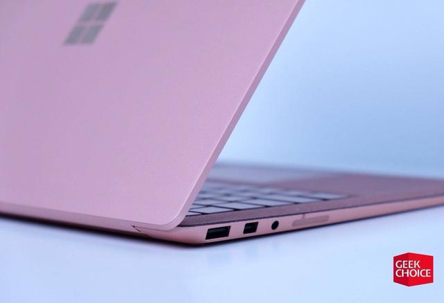 Surface Laptop 2 的接口和上一代产品完全一样,右边是 Surface Connect 磁力口,左边是 1 个标准的 USB-A 母口(支持 USB 3.0)、1 个 Mini DP 以及 1 个 3.5 毫米耳机孔。